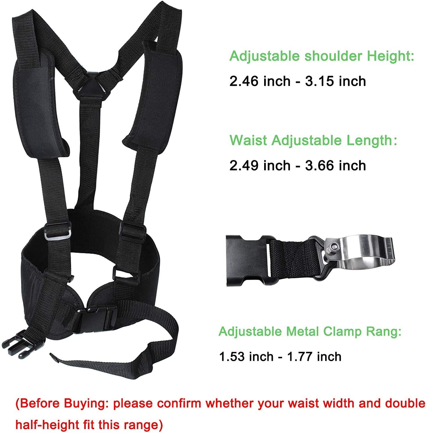 - 〔ADJUSTABLE〕– Telescoping pressure washer wand belt, Adjustable shoulder Height is 2.46 to 3.15 inch, Waist Adjustable Length is 2.49 to 3.66 inch (Before Buying: please confirm whether your waist width and double half-height fit this range)