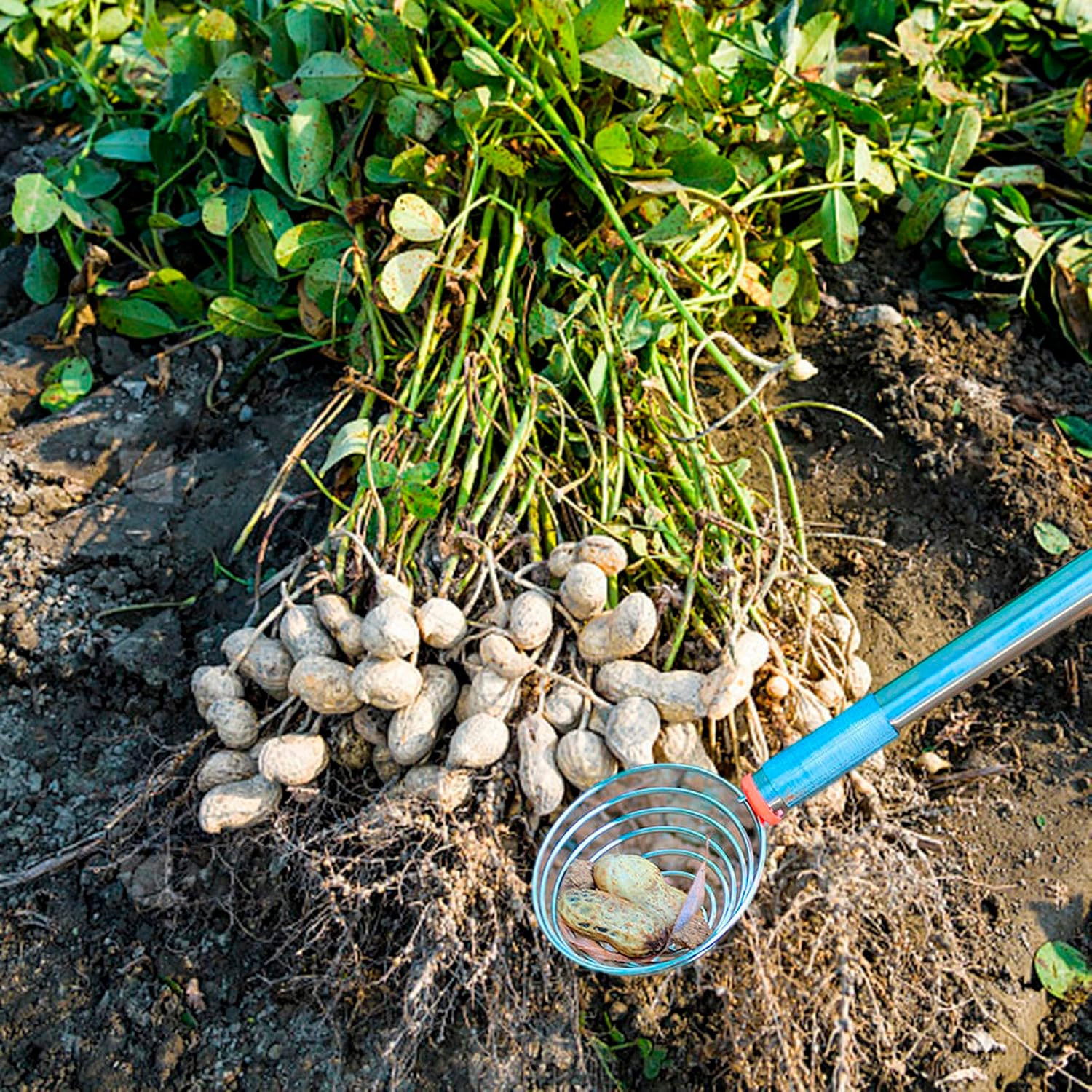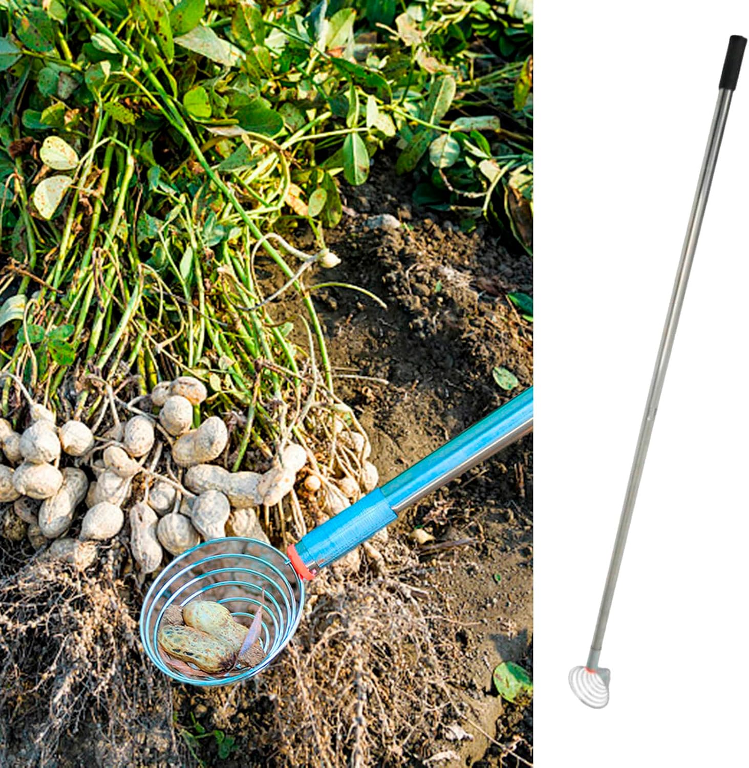 A worker with back and neck disability harvesting peanuts on the ground can use the Grabber without straining or bending their back.