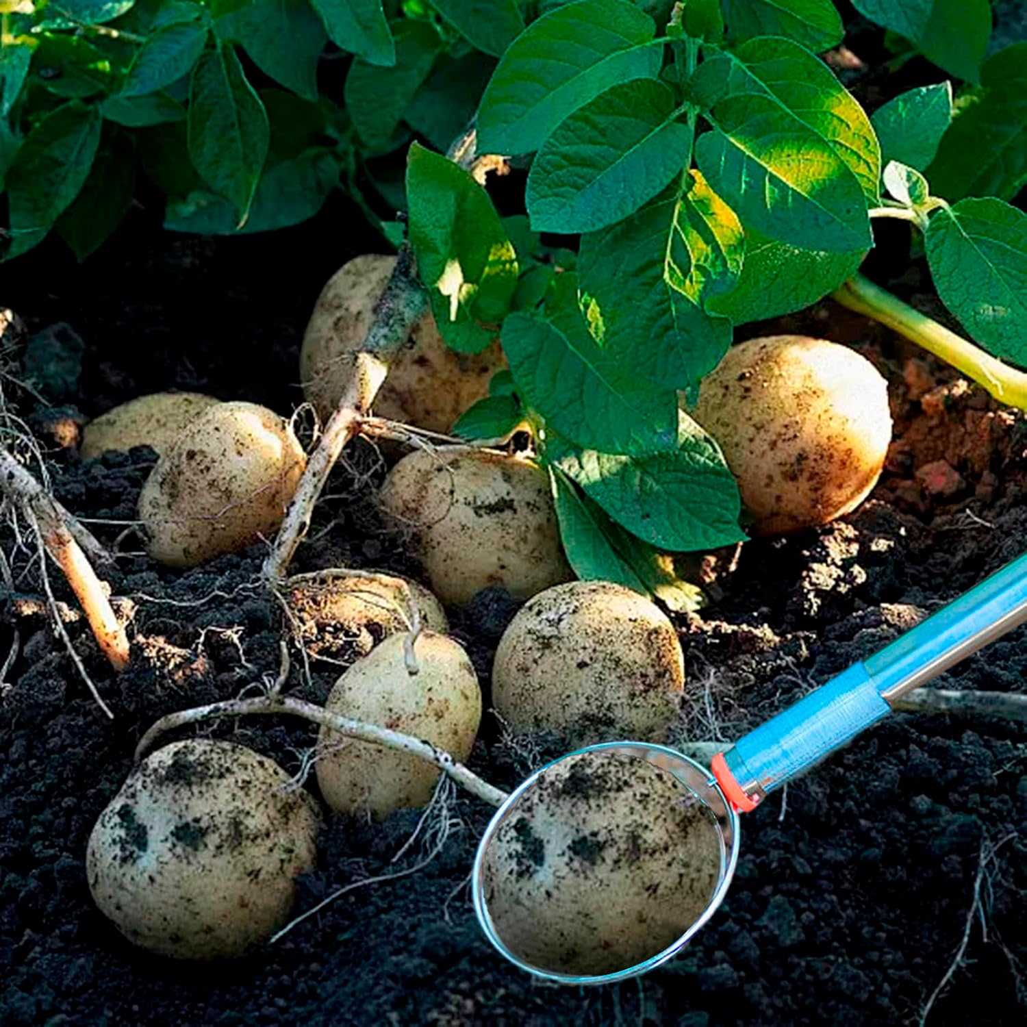 Workers harvesting items on the ground have to bend over to pick them up. The required action of bending repeatedly can cause long term physical problems. The Egg/Nut/Potato Grabber allows workers to collect items without bending over.