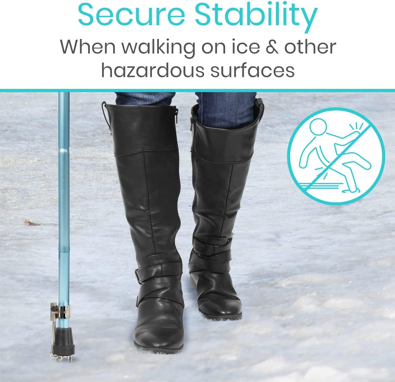 Workers who are constantly in slippery conditions from snow, ice, slush, or mud, and use a cane, can benefit from using a Ice Traction Cane Tip. A farmer working outside in the winter can easily slip and fall on ice or snow. Use of the Ice Traction Cane Tip will allow the farmer’s cane to grab onto the ice without slipping.