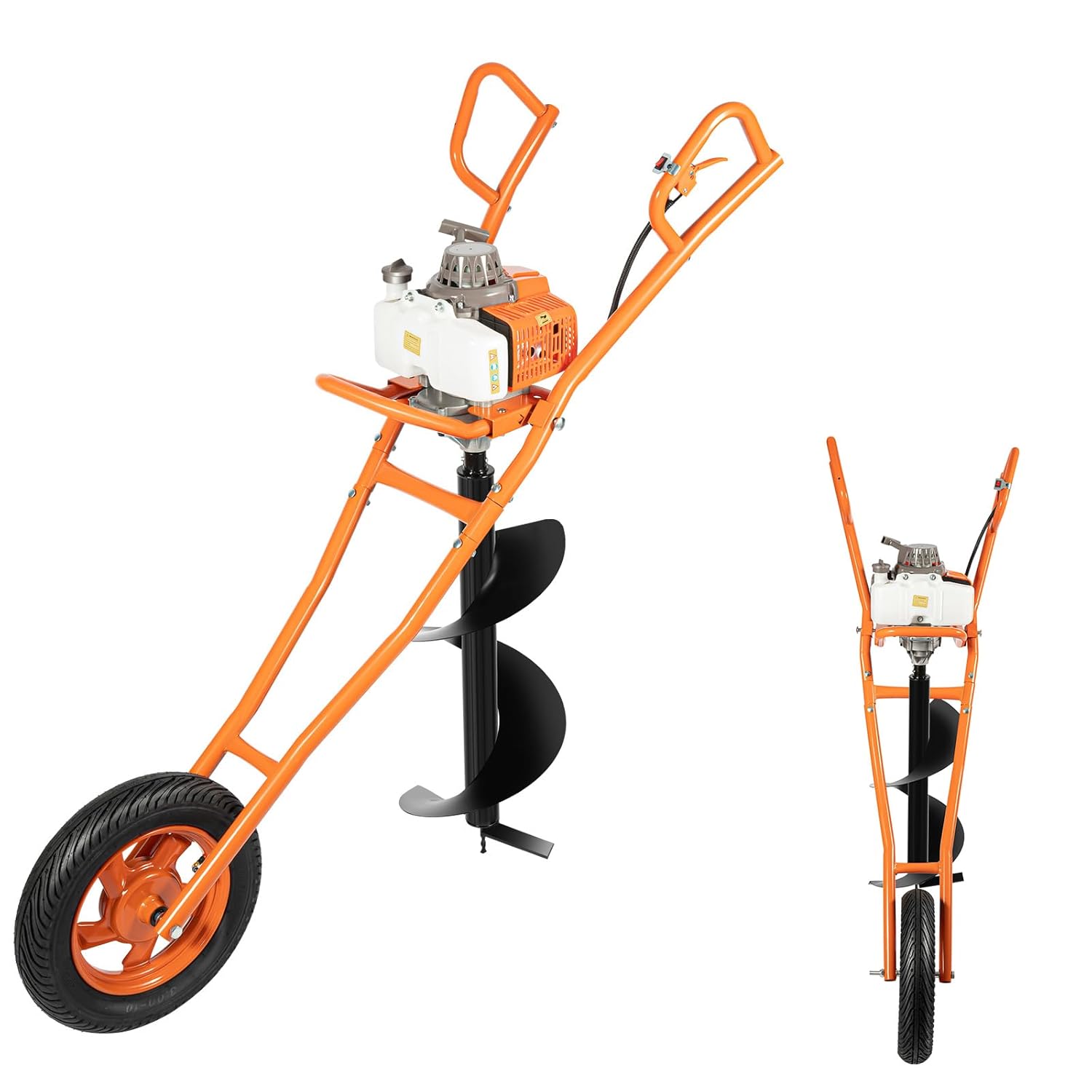 The use of a Post Hole Digger with Wheelbarrow takes a lot of the weight off of the operator. The Wheelbarrow wheel carries a great deal of the weight of the Auger.