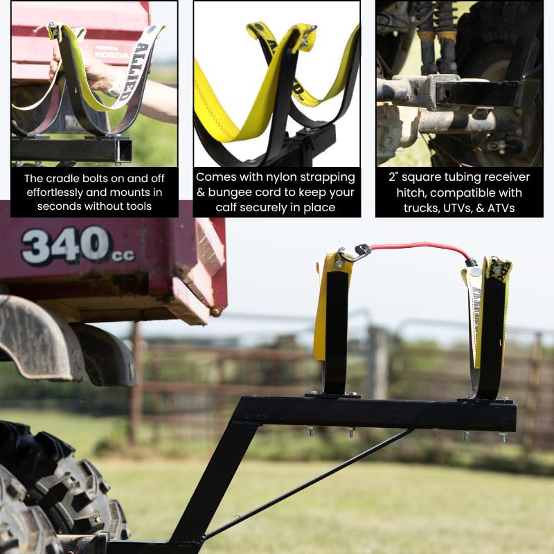 A farmer who has to recover a calf from a field can make good use of a Receiver Hitch Calf Carrier to bring the animal in with a minimum of physical effort. Save those calves who are born in adverse conditions and save your body as well!