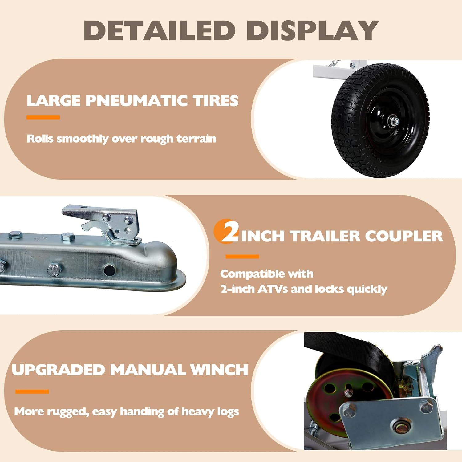 Workers trying to move logs can do so with a Log Skidder to more easily move the logs. Instead of dragging with a chain, the Log-skidding Arch is designed to pick up and carry (fully suspended) any straight logs up to 24″ diameter, 24′ length and weighing 1200 lbs. The four-wheeled design keeps the log from dragging on the ground while using.